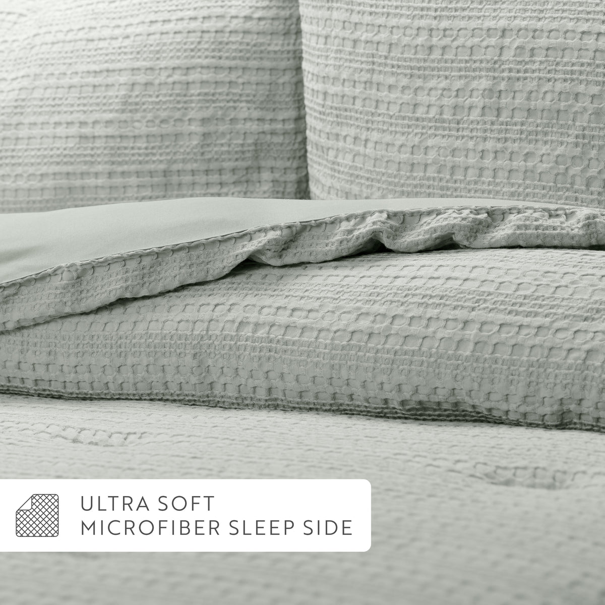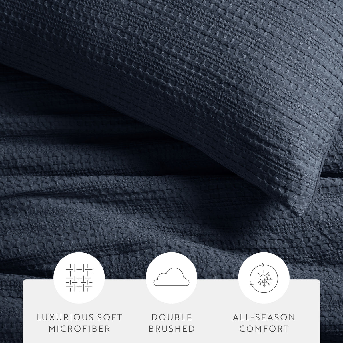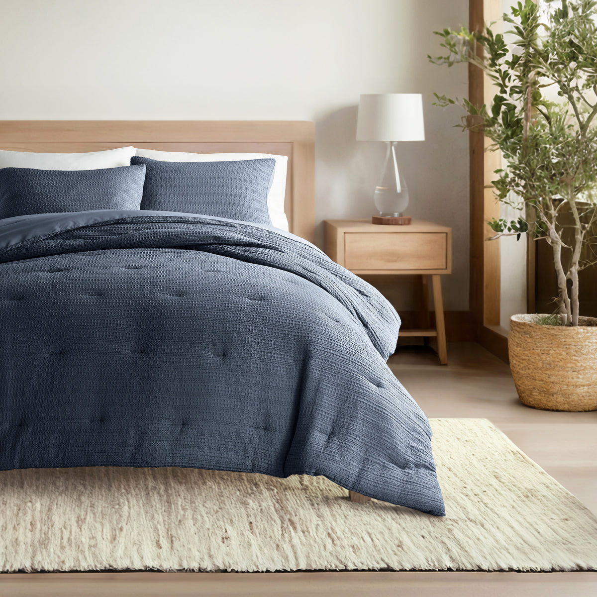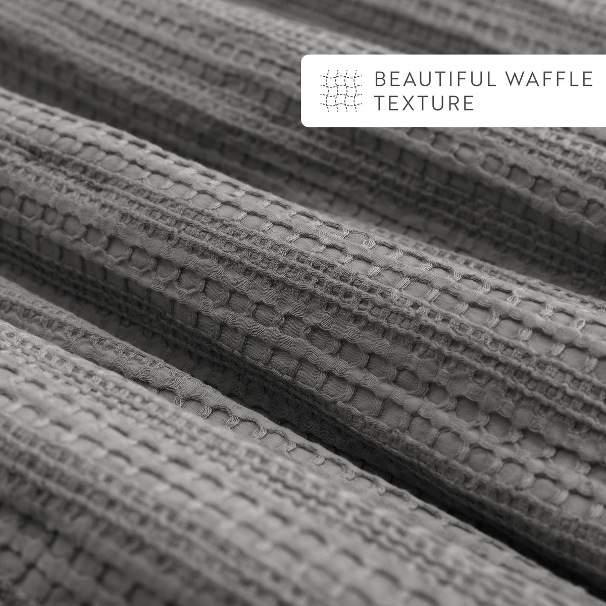 Indulge in the epitome of comfort with our exquisite 3-piece Waffle Textured Comforter set. Its polyester fill ensures a dreamy sleep experience, while the Soft Pre-Wash Finish and Double-Brushed fabric provide a luxurious touch. Plus, its oversized dimensions are perfect for extra deep mattresses. Elevate your sleep sanctuary today and embrace the ultimate in cozy sophistication.