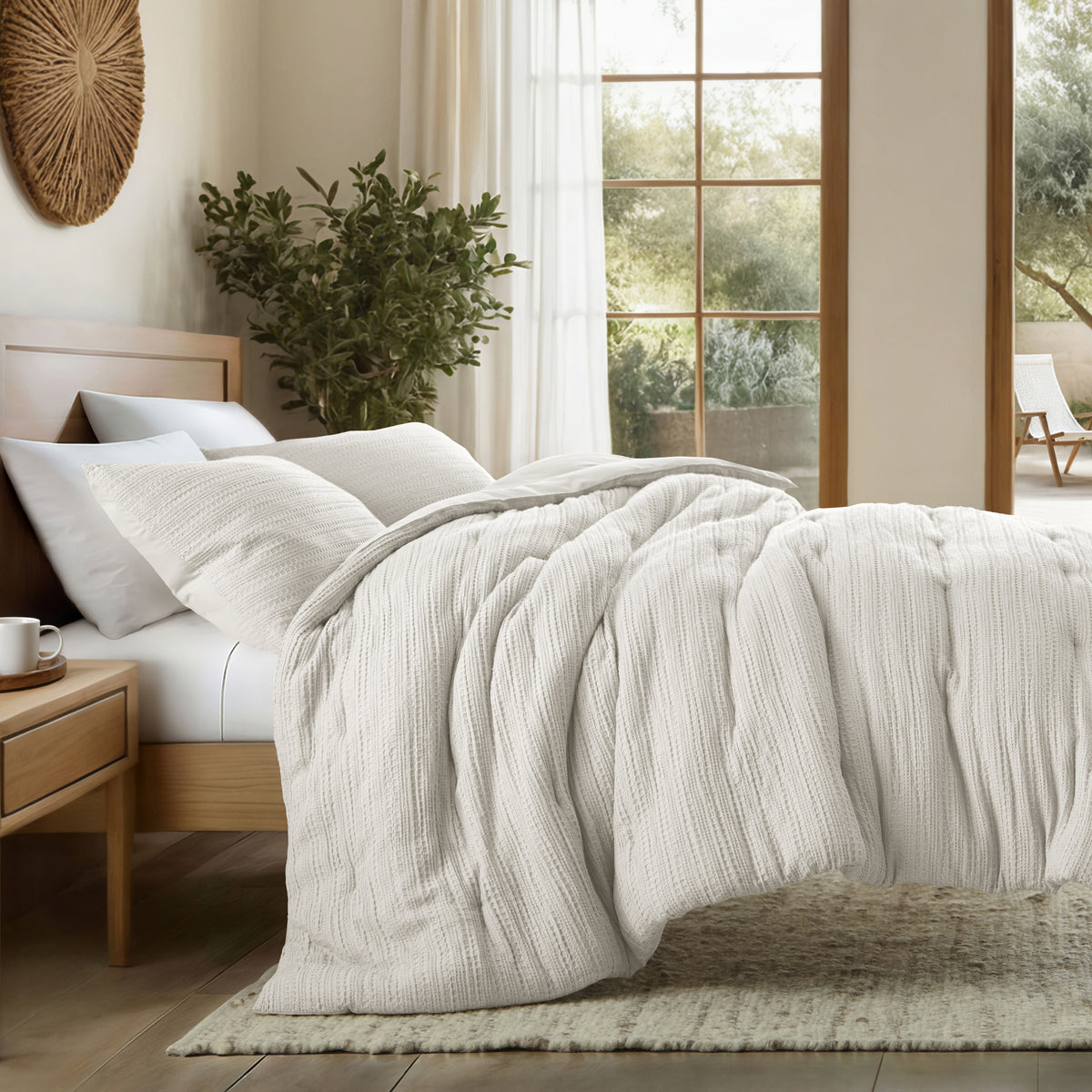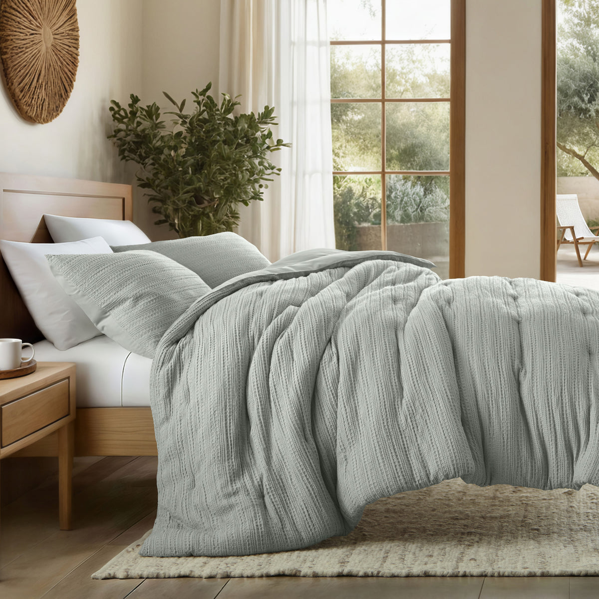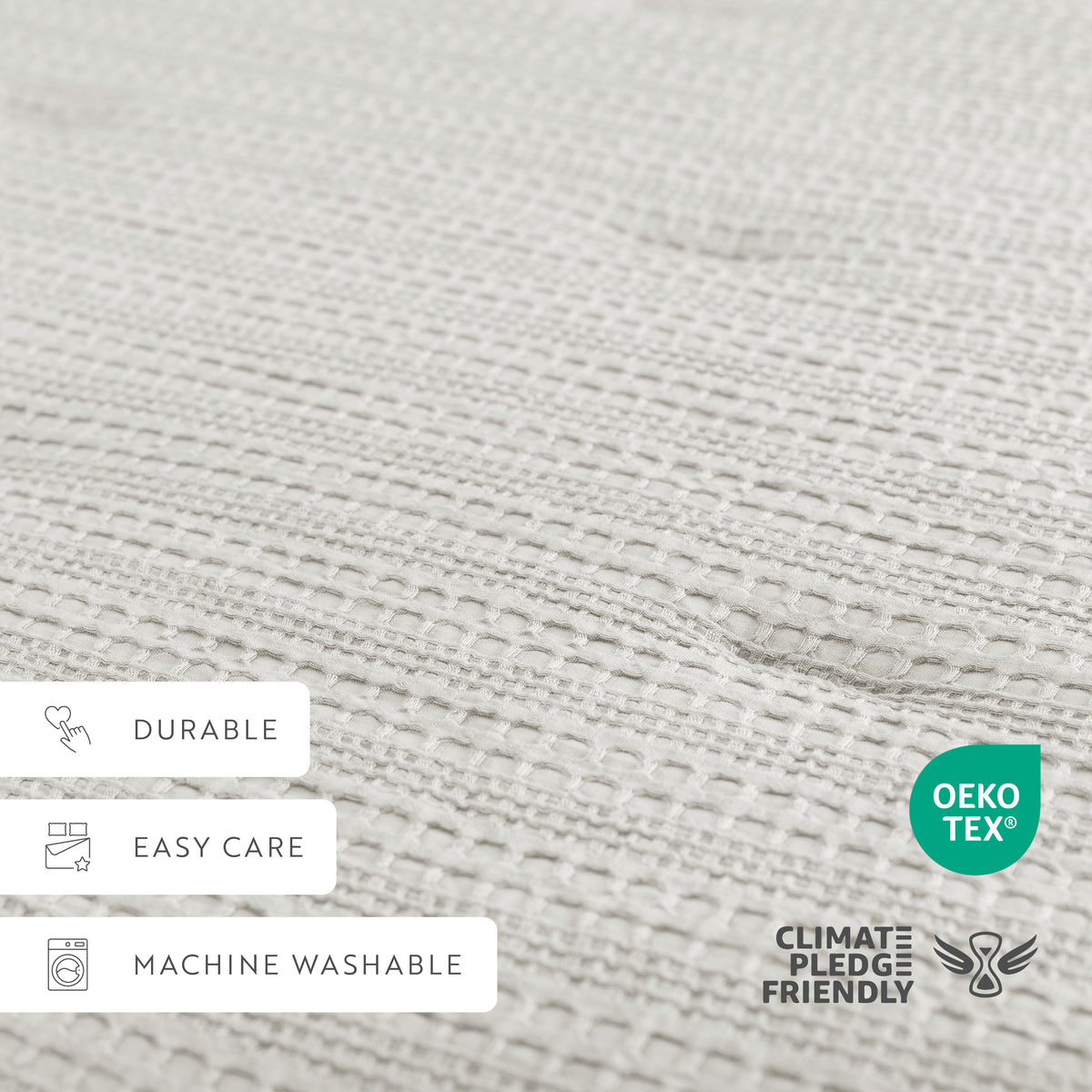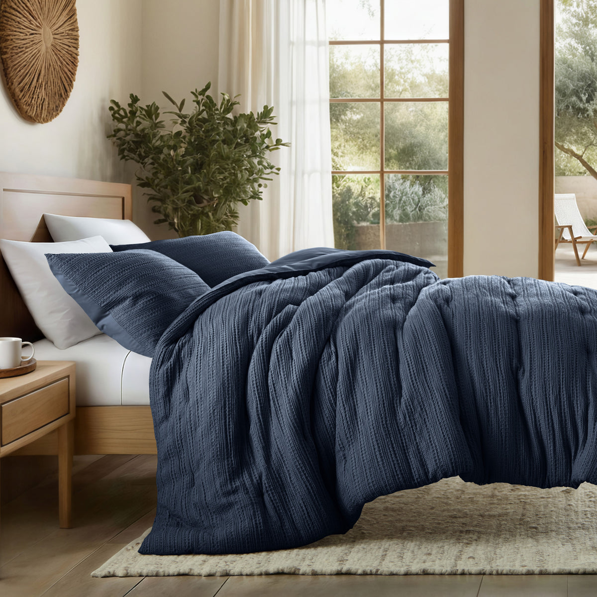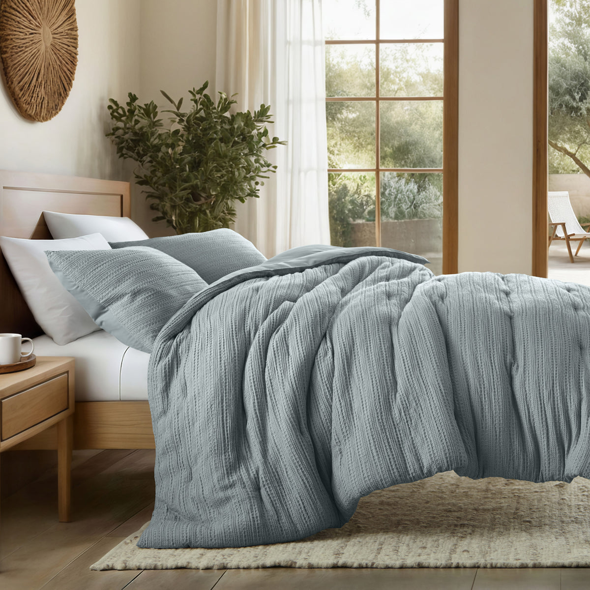 Indulge in the epitome of comfort with our exquisite 3-piece Waffle Textured Comforter set. Its polyester fill ensures a dreamy sleep experience, while the Soft Pre-Wash Finish and Double-Brushed fabric provide a luxurious touch. Plus, its oversized dimensions are perfect for extra deep mattresses. Elevate your sleep sanctuary today and embrace the ultimate in cozy sophistication.