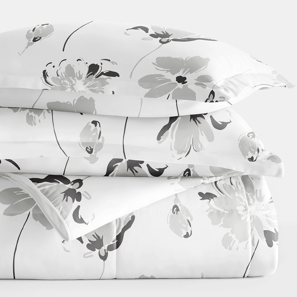 Magnolia Grey Patterned Down-Alternative Comforter Set