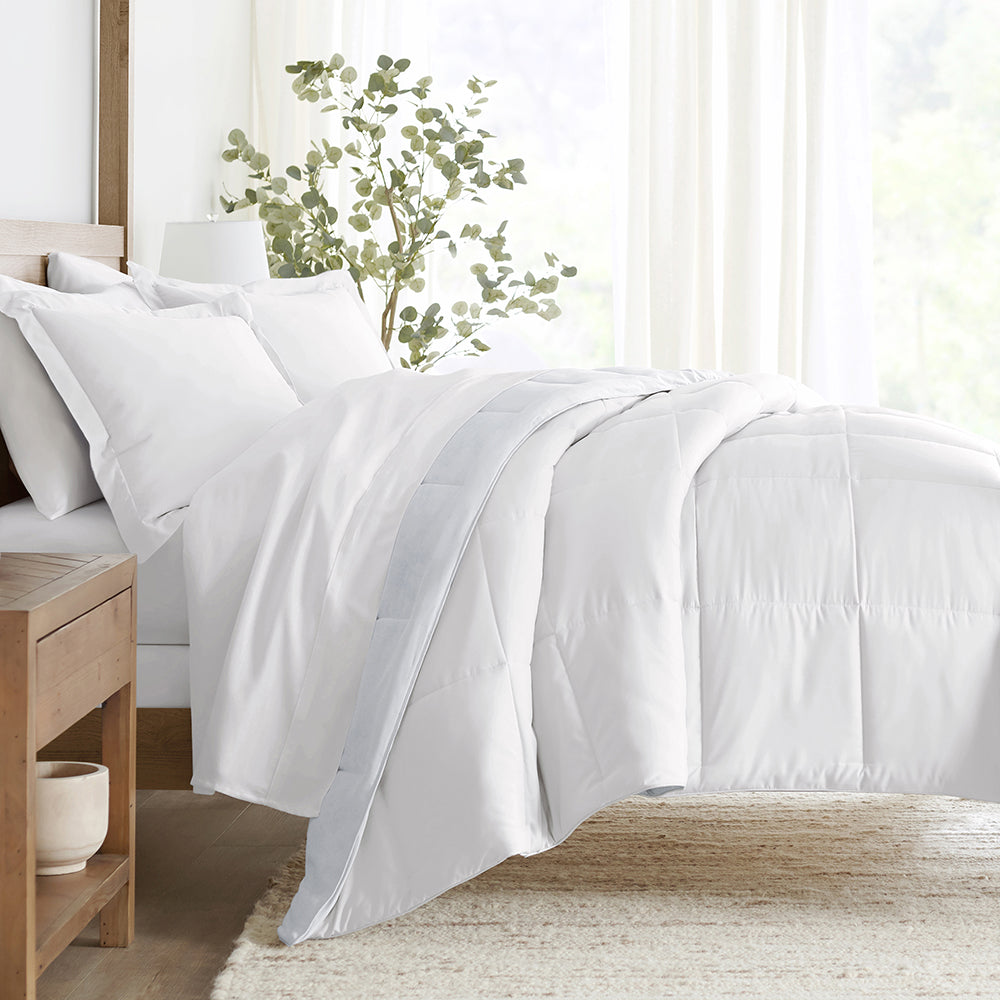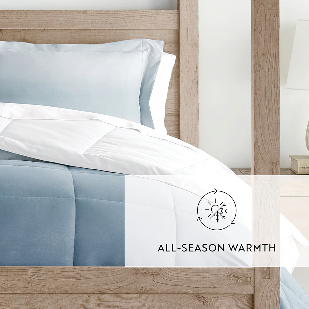 Give your bedding a brand-new look and feel with this lightweight, all-season comforter. Presenting a down alternative quality, its incredible softness makes it the perfect comforter to keep you cozy all year round. The sewn through box stitching prevents the fibers from shifting and helps to eliminate the need for regular fluffing.