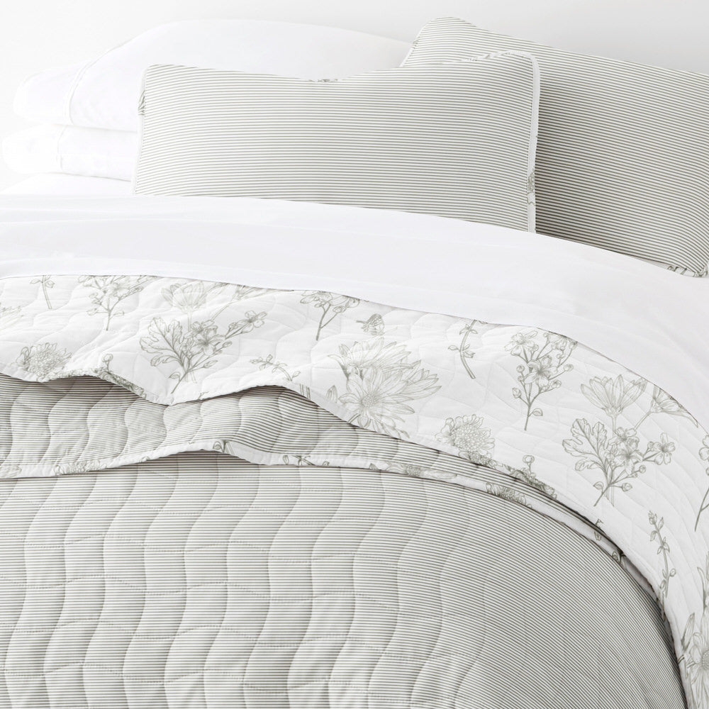 Blooming Daisy Reversible Quilted Coverlet Set