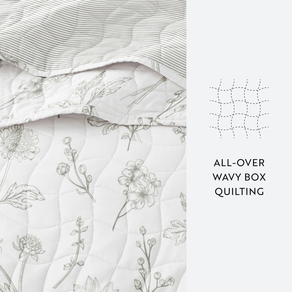 - Set includes 1 quilted coverlet and 2 pillow shams