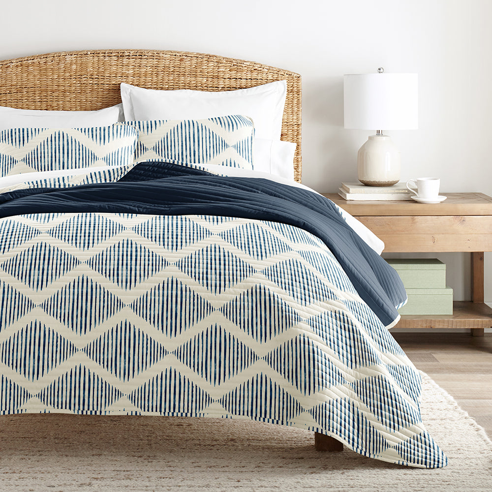 Give your room a comfy new addition with this super soft patterned quilt and sham set. We've generously filled it with artificial down, and each piece is double brushed to give it that super soft, cozy feel. The beautiful, subtle quilted stitchings add dimension and a gorgeous touch to any bedroom. Spun from our premium yarns, this set is twice as strong as cotton, wrinkle resistant and a perfect option for those with allergies or sensitive skin.