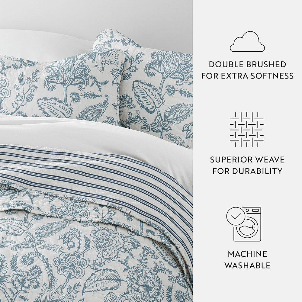 Jacobean/Stripe Reversible Quilted Coverlet Set