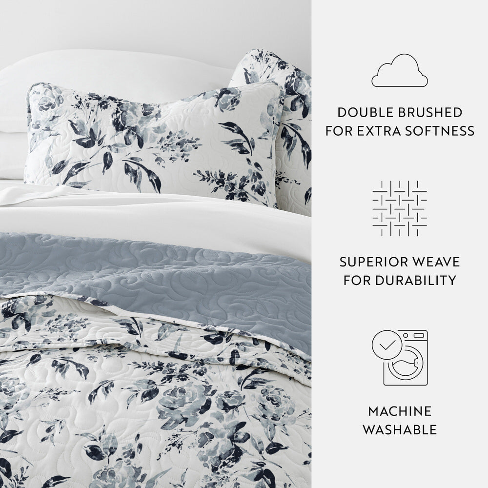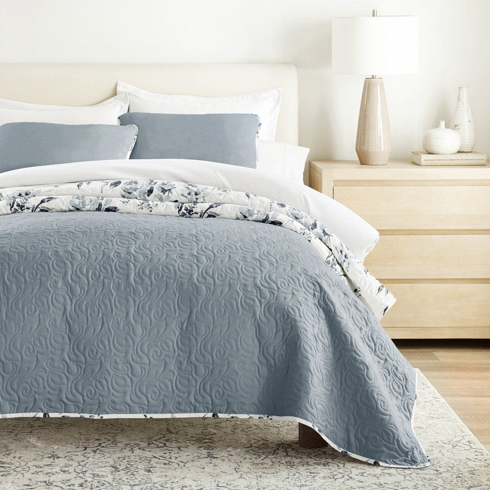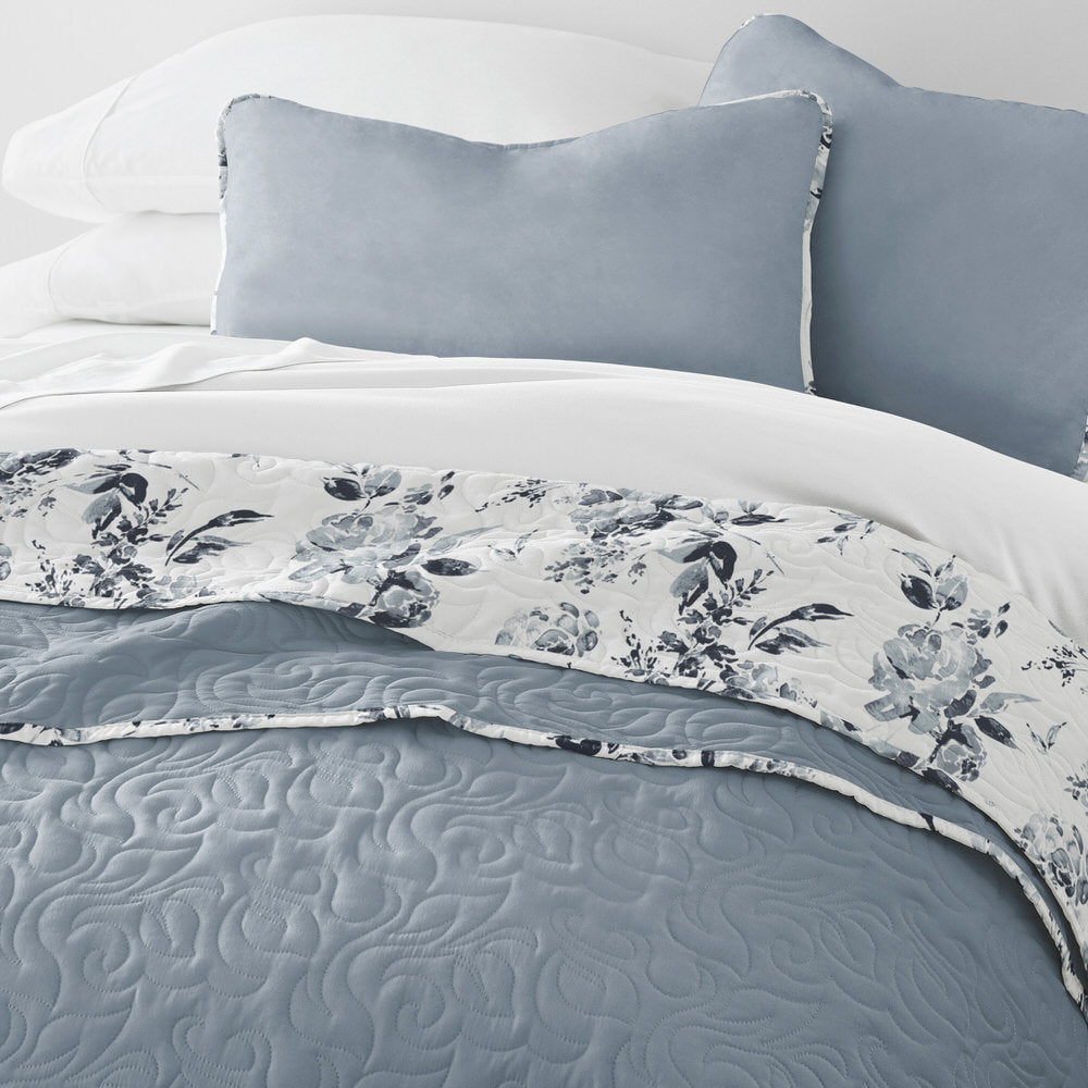- Set includes 1 quilted coverlet and 2 pillow shams