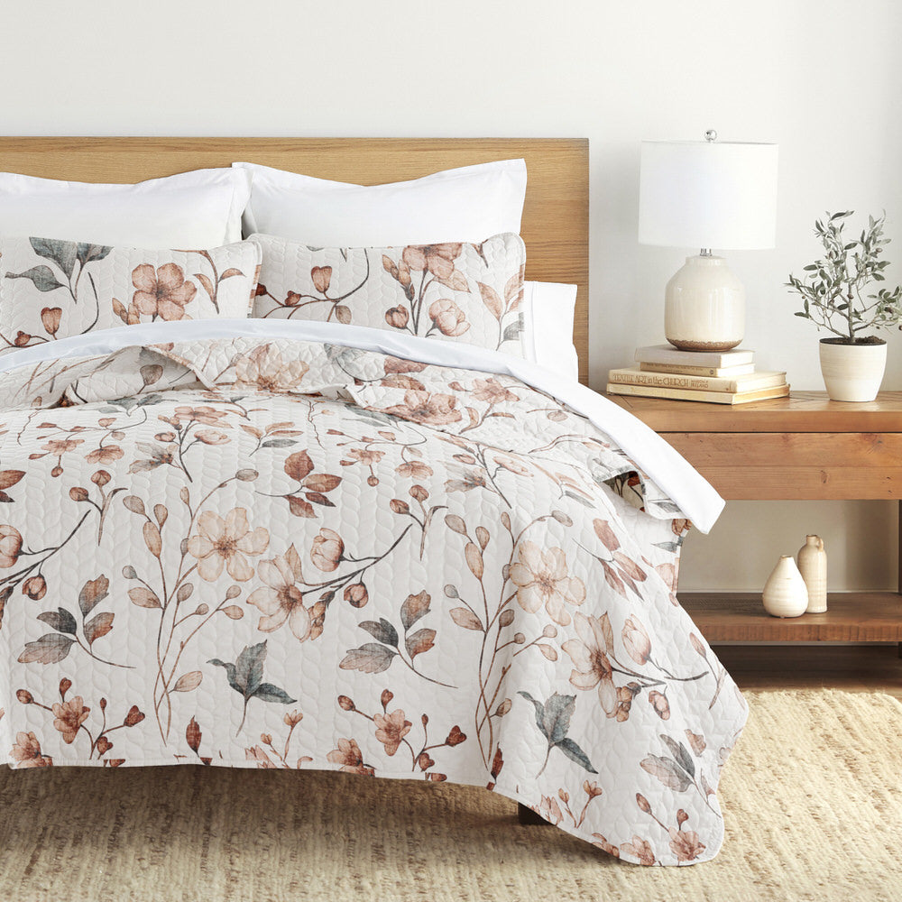 Russet Floral Quilted Coverlet Set