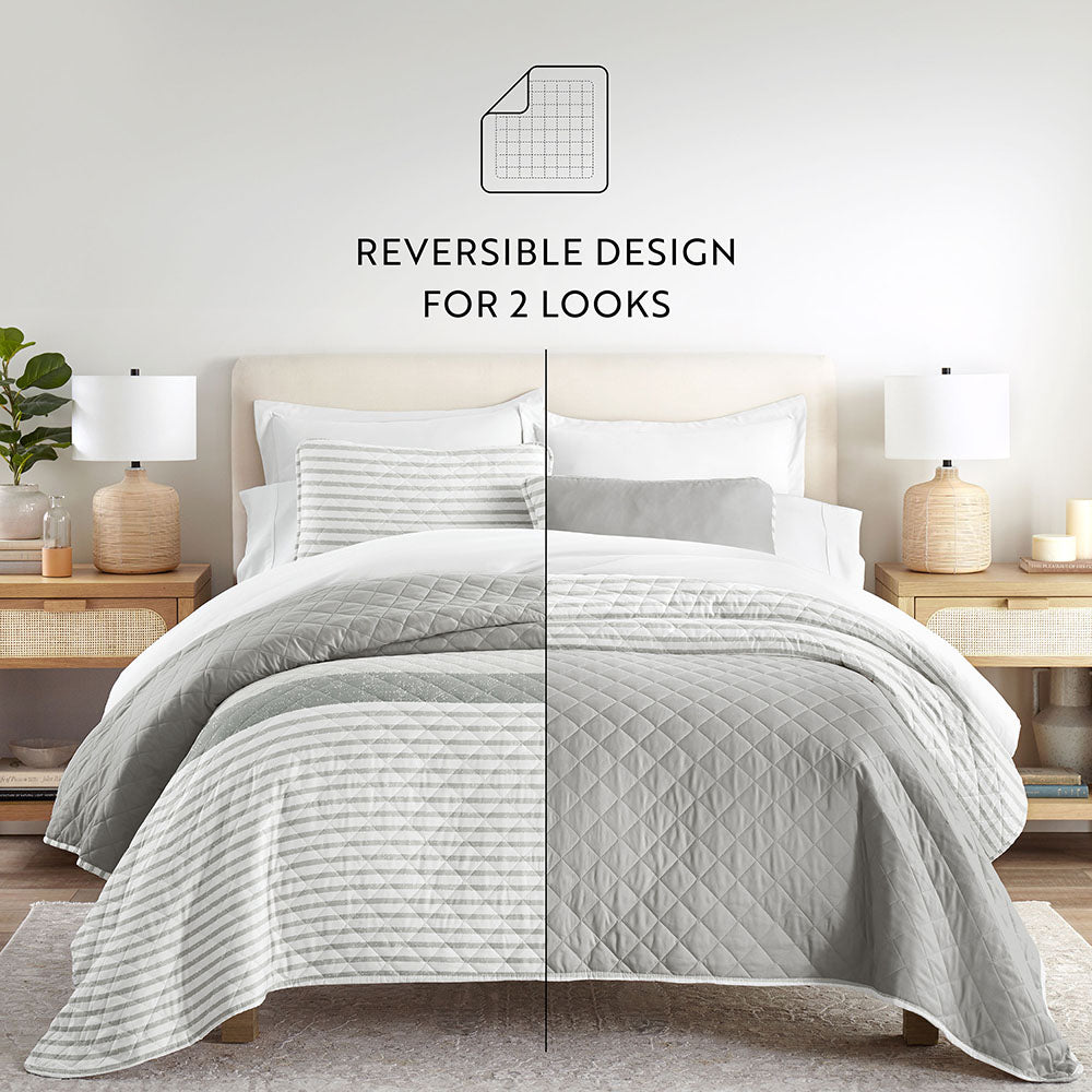 Summer Stripes Reversible Quilted Coverlet Set