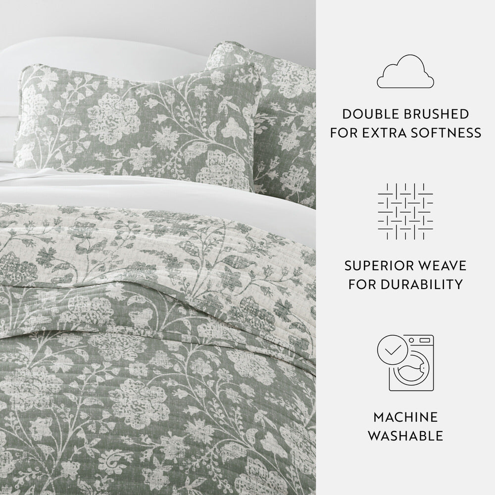 Give your room a comfy new addition with this super soft patterned quilt and sham set. We've generously filled it with artificial down, and each piece is double brushed to give it that super soft, cozy feel. The beautiful, subtle quilted stitchings add dimension and a gorgeous touch to any bedroom. Spun from our premium yarns, this set is twice as strong as cotton, wrinkle resistant and a perfect option for those with allergies or sensitive skin.