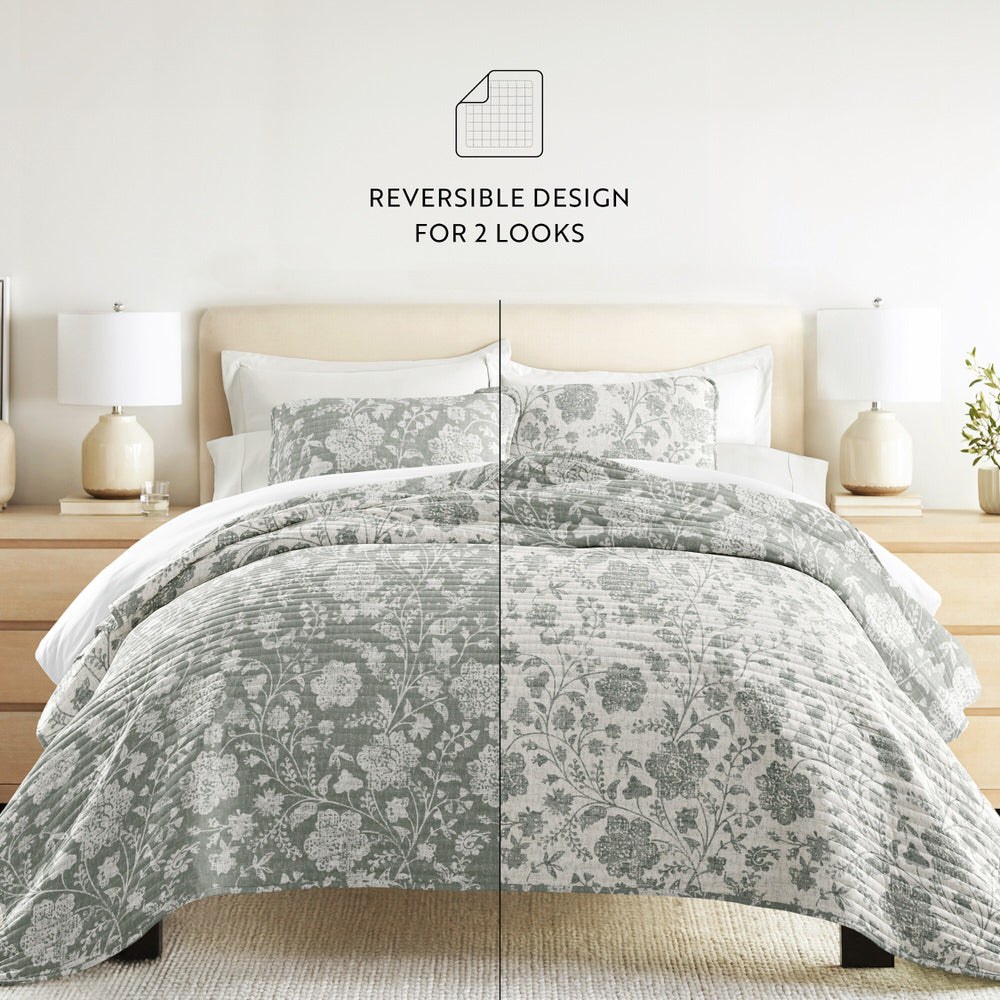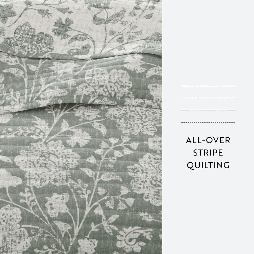 - Set includes 1 quilted coverlet and 2 pillow shams