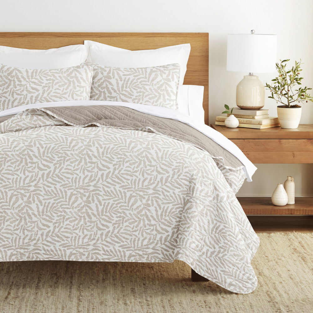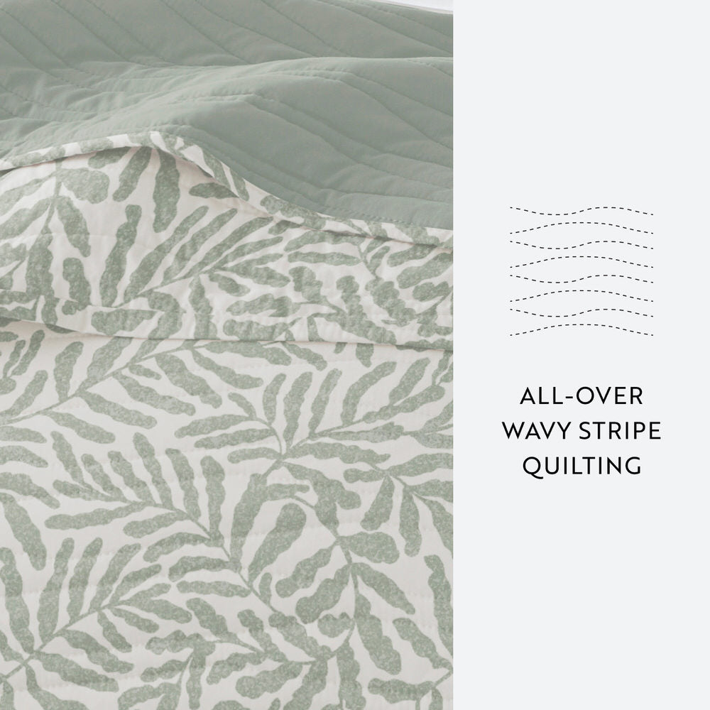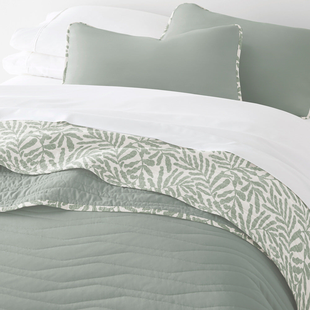 Tossed Ferns Reversible Quilted Coverlet Set
