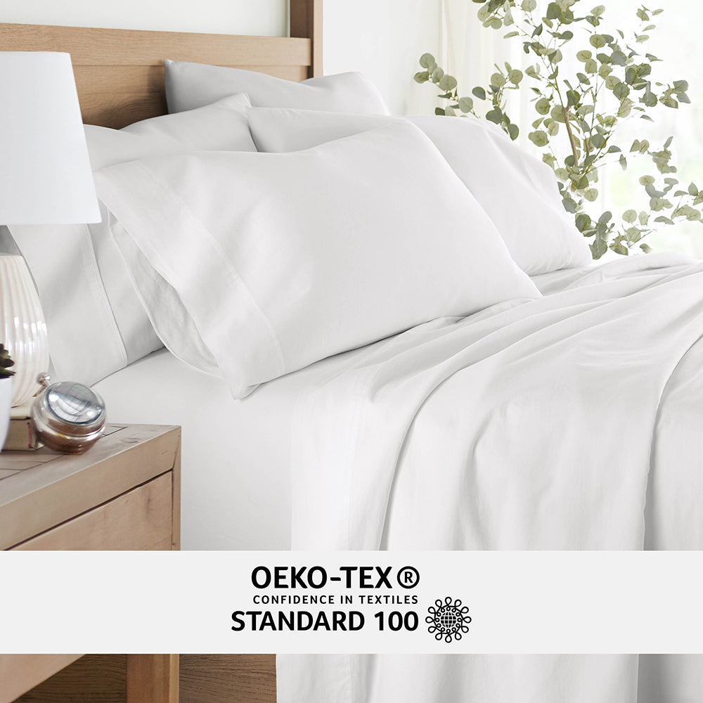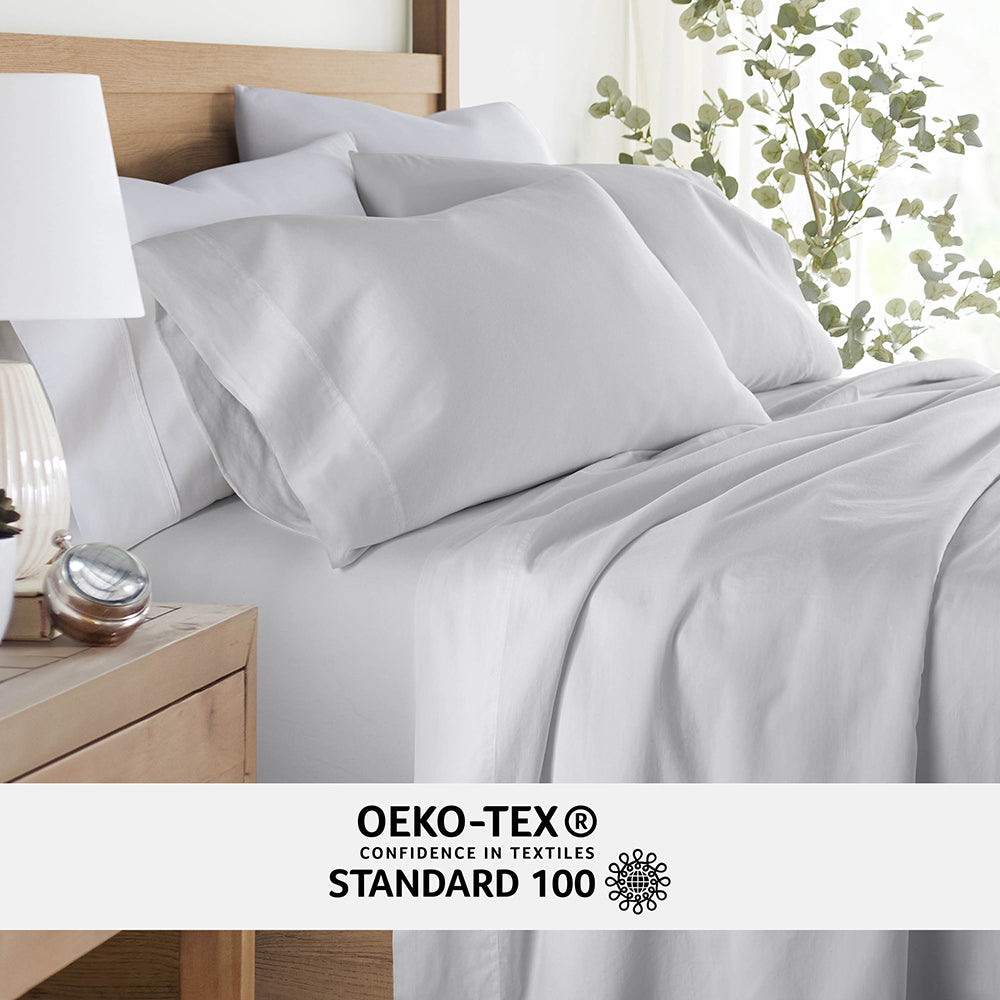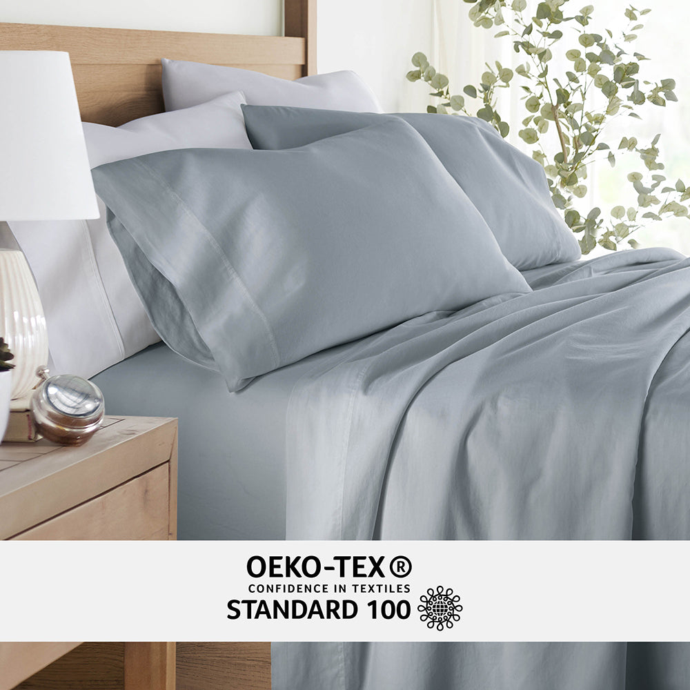 Experience the ultimate in comfort with our 4-Piece Long Staple 100% Cotton Sheet Set. Crafted from the finest long staple cotton, these sheets offer a luxurious touch that will transform your sleep experience. Meticulously washed for superior softness, they envelop you in a gentle embrace, ensuring a restful night's sleep. Indulge in the plushness and durability of long staple cotton, creating a haven of comfort in your bedroom. Upgrade to the epitome of luxury with our Long Staple 100% Cotton Sheet Set and elevate your sleep to new heights of serenity and bliss.