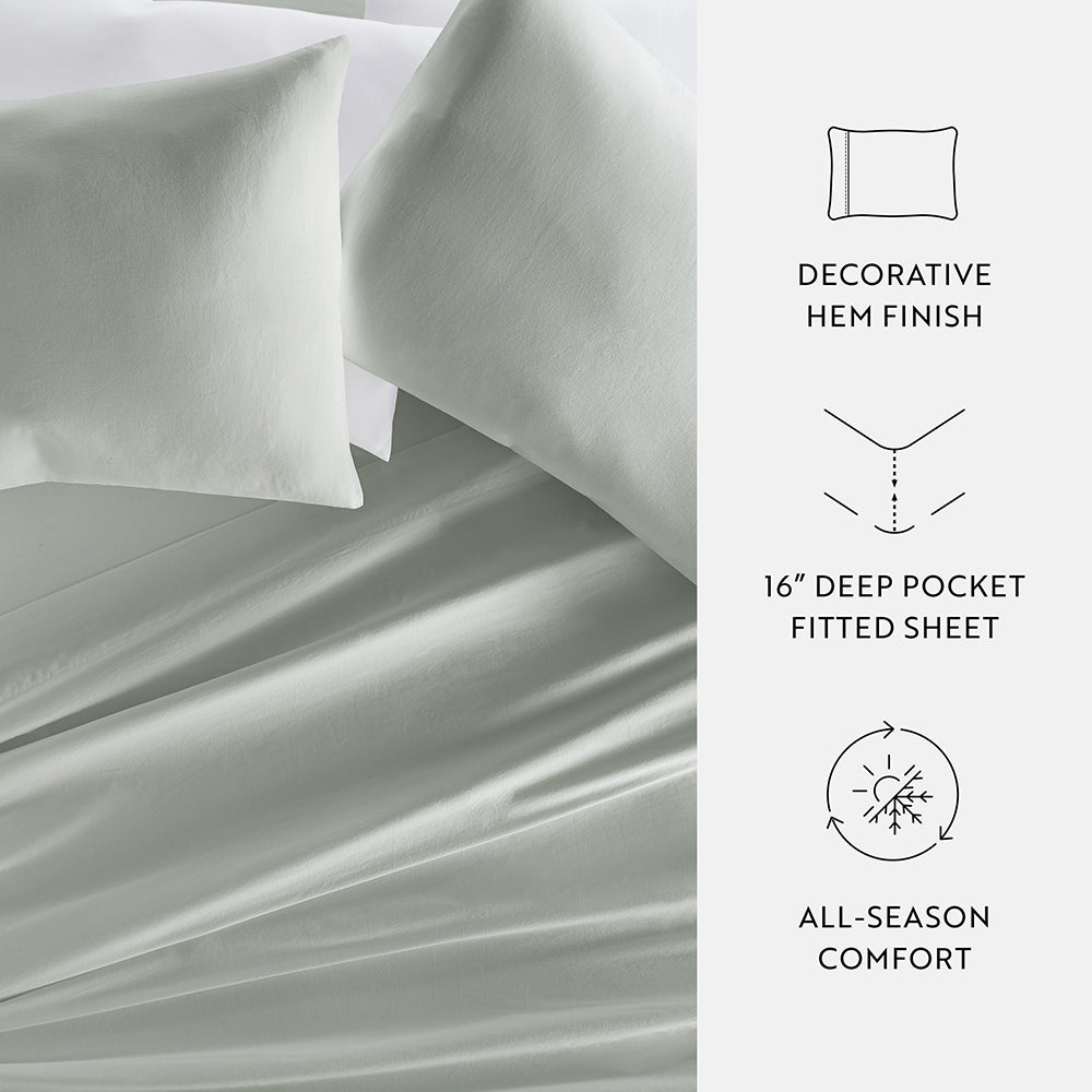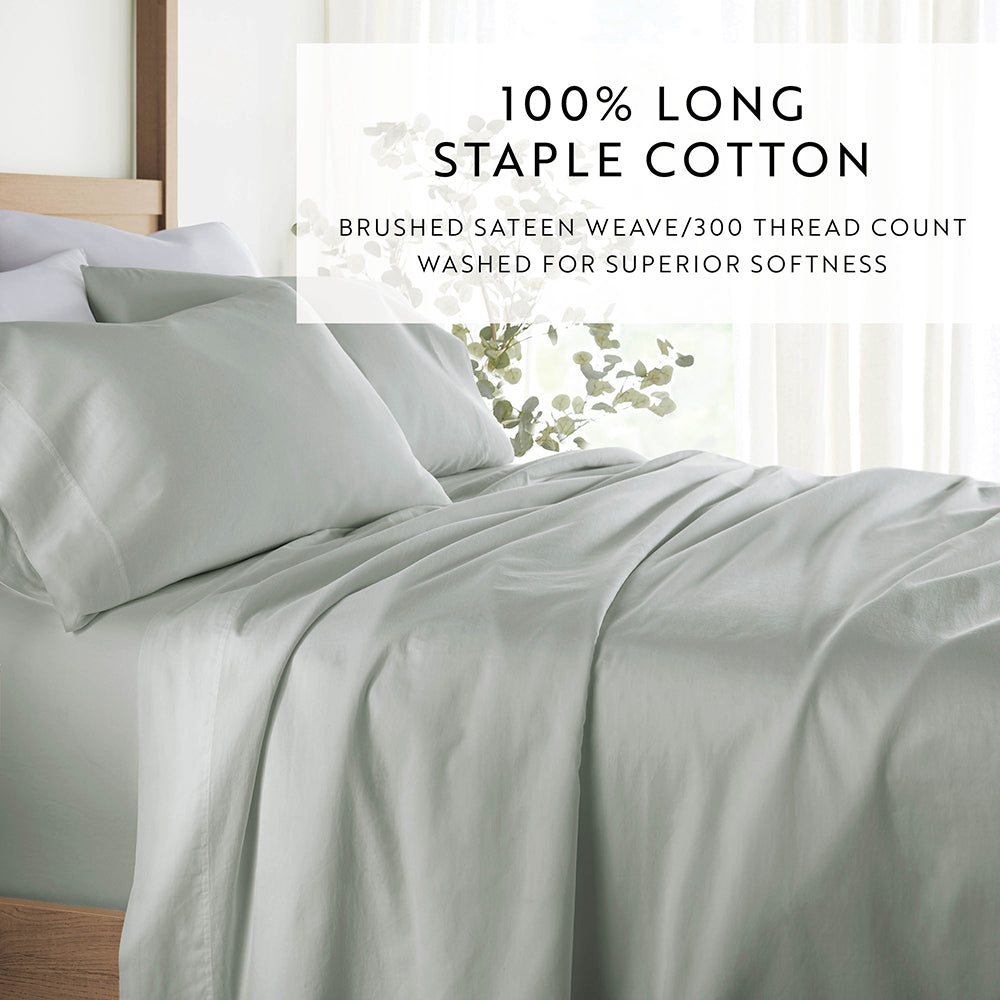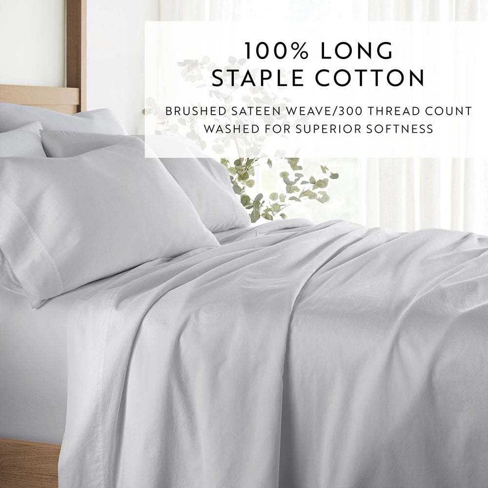 - Fabric Contents: 300 TC 100% Cotton Sateen, Brushed and Washed