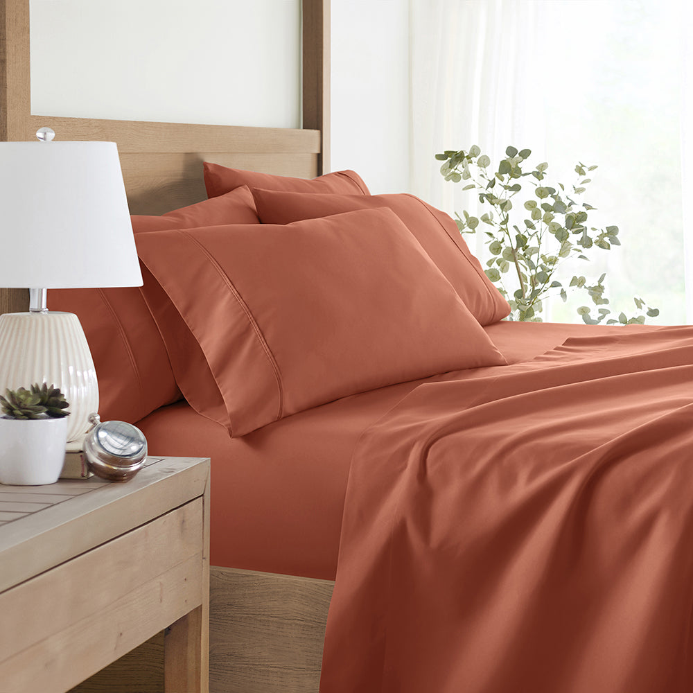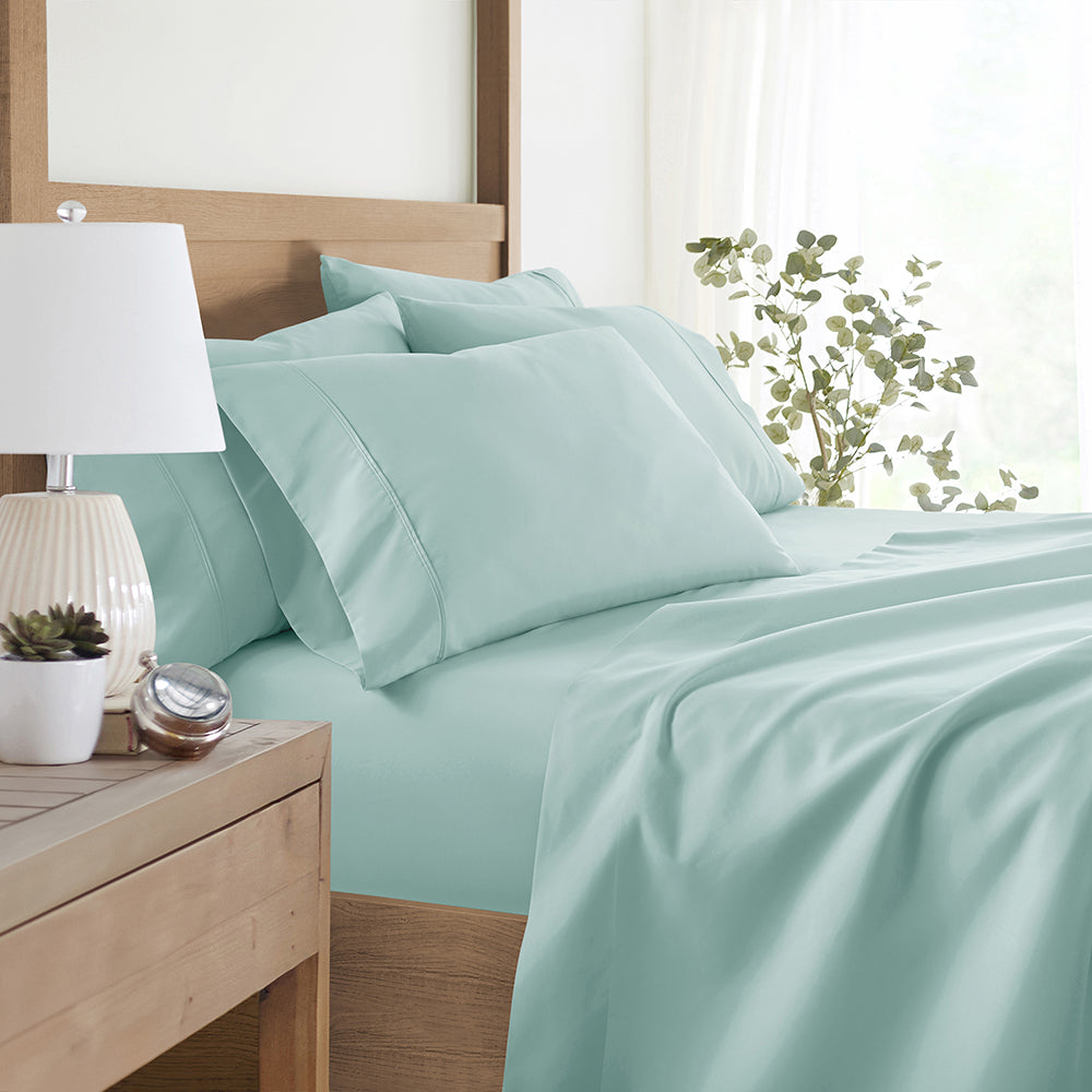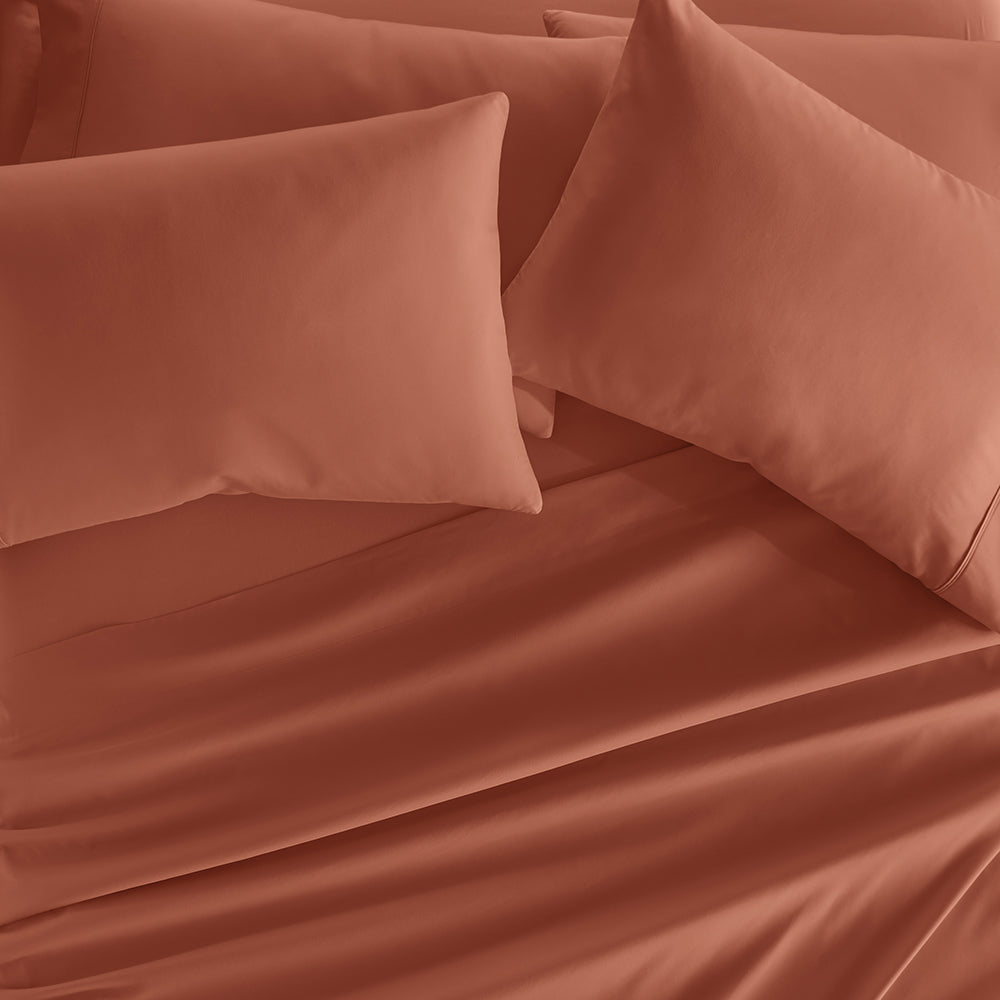 Treat yourself to a fresh new set of sheets with this 6-piece sheet set. Our premium set is twice as durable as cotton, wrinkle resistant and an ideal choice for those with sensitive skin or allergies. Available in a variety of colors, from subtle shades to vibrant rich tones. Each piece is double brushed for an ultra-soft and cozy feel, making it the perfect new addition to your room!
