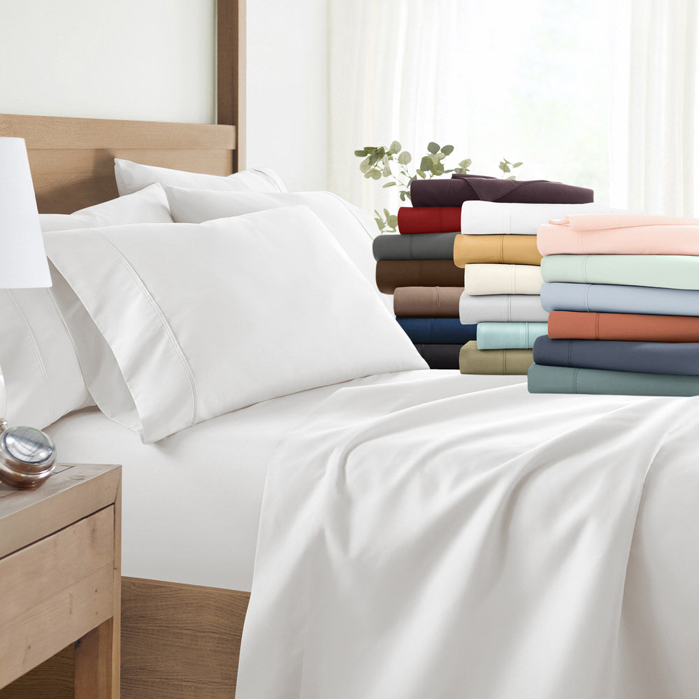 Give your bedding a refreshing new look and feel with this sheet set. Each piece is double brushed to give the set an ultra-soft and cozy texture. Our premium yarns are twice as durable as cotton, wrinkle resistant and ideal for sensitive skin and those with allergies. Available in a variety of rich tones and neutral hues, you're sure to find the perfect set to complete your sleep space.